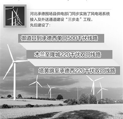 盛夏时节,河北承德市围场满族蒙古族自治县红松洼自然保护区一望无际的大草原上,一排排白色风电塔巍然耸立,风塔上的桨叶随风转动,不断输送着清洁能源。 “靠大风,去年发电36.98亿千瓦时,可实现产值18.7亿元,这是污染近乎为零的清洁能源。”说起风电,该县县委书记刘众民非常自豪。 该县地处内蒙古高原南缘和冀北山地过渡地带,海拔在750米至2067米之间,受来自西伯利亚和蒙古强冷空气的控制和影响,多寒潮大风,风能资源十分丰富。 为合理开发利用好这一资源,该县出台了《关于加快电力产业发展的意见》和一系列关于风电产业招商引资的优惠政策。同时,通过参加投资贸易洽谈会等多种形式加大引资外联力度,鼓励国内外企业来县内投资发展风电产业。 2001年,该县成立了红松风电场,一期工程共安装6台600千瓦风力发电机组,总装机0.36万千瓦,并通过山湾子110千伏变电站并入承德主网正式发电。 成功的案例吸引了众多投资商,让该县成为众多资本争夺的“香饽饽”。截至目前,已有美国通用电气、河北建投、龙源电力、香港华润电力等11家国内外知名公司先后落户该县,累计装机突破200万千瓦大关。 为了让风电顺利送出,当地供电部门还同步实施了风电场系统接入及外送通道建设“三步走”工程:先后建设了御道口到承德西单回500千伏线路;木兰至隆城220千伏双回线路;塔黄旗至承德西220千伏双回线路。华润新能源负责人告诉记者,“输变电线路的畅通,让我们受益匪浅。仅提前半年并网发电,就使我们增加5000多万元利润。” 该县县长甄毓敏告诉记者,风力发电是取之不尽、用之不竭的清洁能源,该县将加快开发步伐,“十三五”期间争取完成风电装机600万千瓦,使风电总装机达到800万千瓦。