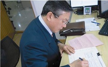 公司代表在捐款薄上签署