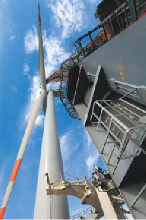 近海多风,风电开发前景广阔。但受风电施工垂直精度要求极其严苛及施工设备跟不上等制约,目前国内规模化开发的海上单管桩风电场,均在平均水深不足5米的潮间带。因为只有在潮间带,施工船才能利用落潮“坐滩”的间隙时间,完成基础沉桩、风机吊装等关键作业,使施工精度得到保障。也正因为此,潮间带风电施工1个月,其真正可用的时间仅有10天左右。涨潮移船运输,落潮“坐滩”作业……这一传统的施工模式,被业界戏称“跟着月亮走”。 针对平均水深超过5米施工船便无法“坐滩”精准作业这一难题,上海振华重工自主研发并获ABS和CCS两大国际知名船级社认证,振华集团南通分公司精心打造,创新研制出国内首艘800吨自升式近海风电施工专用船“龙源振华2号”。该船可利用4条67米长的桩腿在海床“扎根”,再用振华专有技术抬升船体,使整个施工平台脱离水面“站立”大海中。如此风电安装不再受潮汐影响,作业精度得以保障。由于桩脚超长,“龙源振华2号”的最大工作水深可达30米。 此次龙源振华在如东海上风电场使用“龙源振华2号”,在平均8米水深的海域安装4MW大功率风机,基础沉桩便一举创造出单管桩垂直度0.19%。的佳绩,将“风电沉桩垂直度达2.75%。即为可直接安装风机的优质工程”这一国际标准,远远抛在身后。 全新风电施工新平台的运用,使海上风电的开发空间从近岸潮间带,延伸至更广阔的近海。龙源振华公司总经理李泽介绍,“龙源振华2号”完成如东风电场相关工程后,本月底将远赴东海,承担福建龙源莆田南日风电场建设重任。