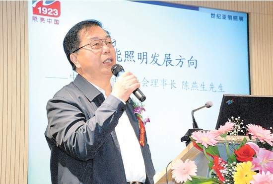 日前,建湖县举办了“城市低碳·节能照明”论坛,中国照明电器协会理事长陈燕生、同济大学建筑与城市规划学院教授郝洛西、美国加利福尼亚大学教授麦克等专家应邀出席论坛,并作精彩报告,共同探讨了低碳经济与节能照明发展的关系,阐述了未来中国乃至世界节能照明的发展方向与前景。图为陈燕生作《中国节能照明发展方向》报告。