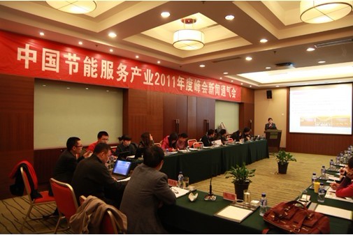 2011年12月15日,“‘中国节能服务产业2011年度峰会’新闻通气会”在北京中环假日酒店召开。国家发展和改革委员会能源研究所副所长、研究员,本次“2011年度峰会”大会主席戴彦德、中国节能协会节能服务产业委员会(EMCA)主任吴道洪、EMCA副主任兼秘书长赵明、EMCA副主任胡杰以及全国各媒体代表出席会议。会上,嘉宾就中国节能服务产业发展形势、“2011年度峰会”以及EMCA与2011产业发展情况等问题发表讲话。