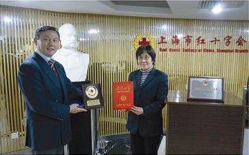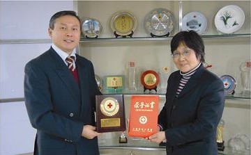 红十字会代表向公司赠牌证书