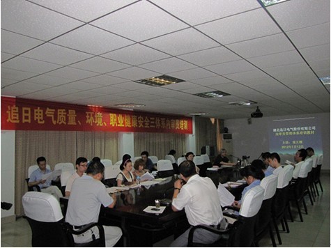 7月13至15日,追日电气邀请中国方圆标志认证委员会湖北审核中心的专家张立顺来到公司,为公司管理人员及内审员进行了质量、环境、职业健康安全三个管理体系的培训授课。追日电气长期重视并坚持质量和环境管理体系的持续改进,通过“走出去,请进来”的等多种形式,每年组织各层次人员开展培训学习活动,深入对质量、环境及职业健康安全管理体系的学习和贯彻,使之为公司的经营和生产“保驾护航”。