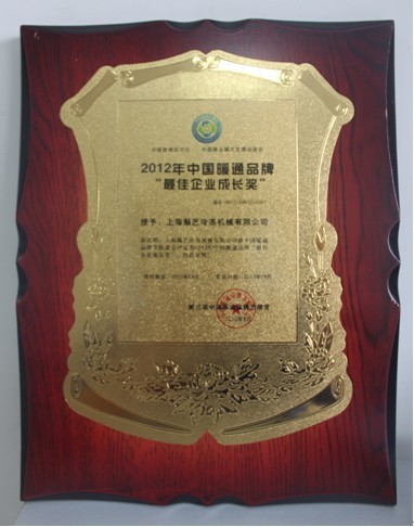 2012年度中国暖通品牌“最佳企业成长奖”奖牌