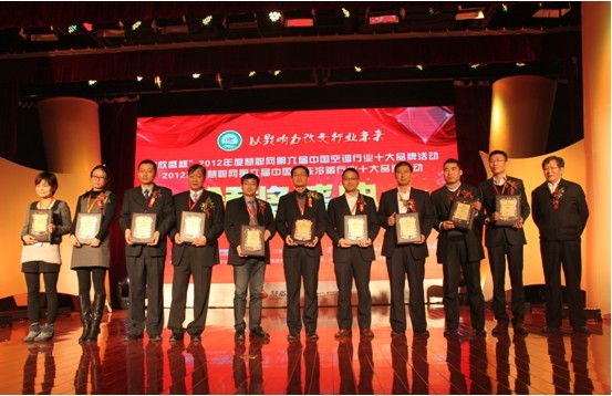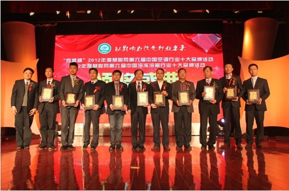 欣盛杯2012年度中国十大中央空调民族品牌颁奖现场 瀚艺集团总裁潘亚平(左五)接受颁奖
