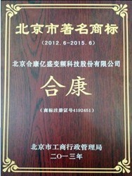 近日,从北京市工商局获悉,合康变频获得2012年度北京市著名商标(有效期2012年至2015年);这是公司继2009年后,第二次获此荣誉称号。