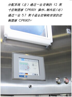 多功能分配系统是生产线的核心组成部分 大多数 TVI 肉类加工中心的核心部分且位于邻近制冷机位置的是多功能 GMS 500 分配系统 — 公司最大的收入来源。设备通过性能强大的 CX1030 嵌入式控制器和TwinCAT NC I 软件控制。控制面板是一台集成式 CP6901,带有不锈钢边缘和一个齐平安装的 12 英寸触摸显示面板。四个紧凑型EtherCAT伺服驱动器 AX5206 和五个变极绕组同步伺服电机 AM3021 与 AG2210 行星齿轮减速机确保了高精度运动控制。 GSM 500 专为高精度工作流设计,执行下列工艺步骤: 操作人员将一片或多片肉放到模具中 机器将模具回转到切割位置并激活合适的活塞 肉完美成型并纵向测量 机器无剩余或有少量剩余地分配肉在一个线性单元根据目标重量确定切片的厚度后,刀具开始切第一片。然后,机器连续地切剩下的肉片。在完成最后一次切割后,模具旋转装置将下一片肉移动到位,并重复该过程。