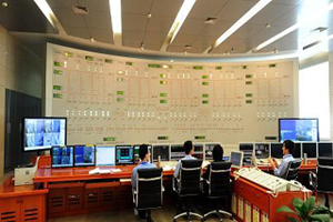 三峡电厂技术人员在三峡左岸电站总控室工作(5月21日摄)。