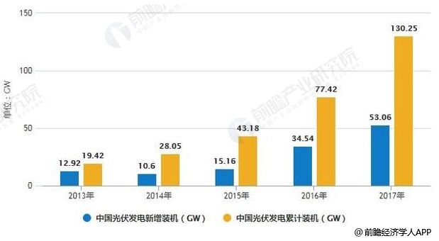 2013-2017年中国光伏发电新增、累计装机统计情况