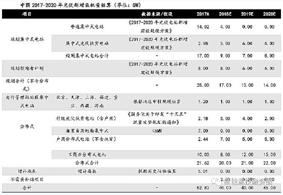 我国光伏装机维持高速增长态势,2012年我国光伏新增装机3.56GW,累计装机7.06GW。2017年我国光伏新增装机53.1GW,同比增长53.7%,五年复合增长率为71.7%,累计装机达到130.0GW,同比增长66.5%,五年复合增长率为79.1%。2017年我国分布式光伏爆发式增长,全年分布式新增装机19.3GW,同比增长357%,累计装机达到29.7GW,占比达到22.8%。 未来三年装机需求回落,分布式、光伏扶贫和领跑者计划成为增长主要看点。受17年高基数及531政策影响,2018-2020年国内光伏装机需求有所回落,根据估算,2018-2020年新增光伏装机需求分别为40GW、40GW、45GW,合计约125GW。2018-2020年集中式电站合计新增装机量分别约为17GW、13GW、14GW,分布式电站合计新增装机量分别约为20GW、21GW、22GW,另外,每年自行管理的地区集中式电站约3GW。新增装机之中领跑者计划合计约20GW,光伏扶贫合计约28GW,分布式(不含扶贫)合计约52GW。