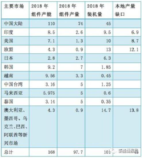 “纵观近年来光伏行业发展形势,全球GDP增长率与全球光伏装机增长率基本呈现正相关曲线,GDP和光伏市场装机量的增长主要来自中国GDP年均7%左右高速增长,以及中国国内光伏市场五年内的快速崛起,强势拉动。” 中国机电进出口商会太阳能光伏产品分会执行理事长王贵清近日在光伏行业年度大会上对目前处于中美“贸易”争端背景下的中国光伏产业出口形势做了分析。 他表示,以美国、印度、欧盟为代表的全球光伏主要市场均对我国发起贸易摩擦事件,而这些主要市场的本地光伏产品产量缺口达到45GW,主要依靠进口,大部分由中国出口及中国企业海外产能供给。 其他新兴市场如南美、非洲、中东、东南亚等地区在日渐成熟,其本土产量缺口巨大,未来将成为中国光伏产品的主要出口市场。