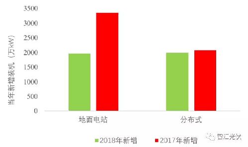 从上图可以看出, 1)相对于2017年,2018年的装机规模减少,主要是地面电站项目;地面电站相对于2017年大约降低了12.5GW以上,下降比例高达38%; 2)2018年新增的分布式装机规模与2017年相当,甚至还略高于2017年; 3)2018年新增装机中,分布式占比近50%; 4)如果按531之前分布式有补贴,531之后仅光伏扶贫分布式项目有补贴,则2018年将有约5GW分布式项目是无补贴指标的。 这部分项目,是否能进入明年的补贴目录?这还是个悬念。