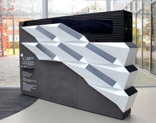 他们的实验系统旨在使美学更加愉悦,而不是简单地将传统的面板平放在建筑物的正面,同时还可以更有效地接收阳光以转化为电能。后者是通过一种设计来实现的,在这种设计中,每个面板都朝着太阳倾斜,而不是从建筑物的侧面直面向外。结果,该装置比同等数量的传统垂直安装面板多提供多达50%的能量。