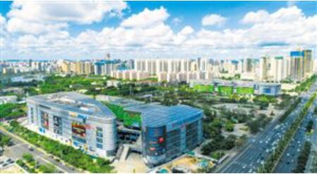 海口日月广场楼顶,光伏发电板整齐划一,源源不断地为日月广场输送用电。